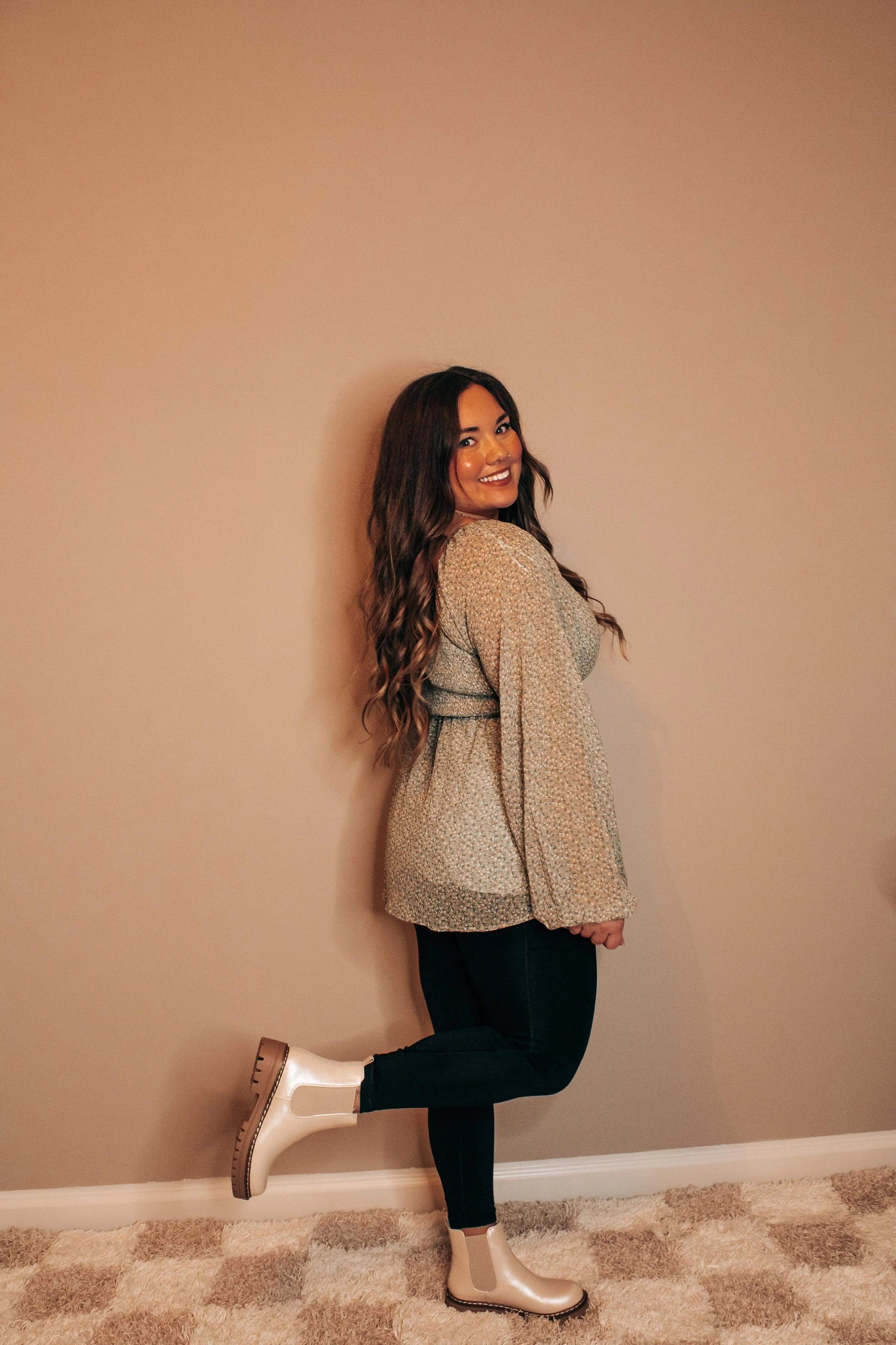 We are loving this two tone layering top!! Pair it with your favorite vest and booties this fall season!!